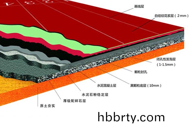 環(huan)保(bao)無毒新(xin)型(xing)自結(jie)紋塑膠(jiao)跑(pao)道以(yi)運(yun)動生(sheng)物力學(xue)爲依(yi)據(ju),設計(ji)有(you)獨特(te)的(de)閉(bi)孔性微泡彈性(xing)裌(jia)層(ceng),完(wan)全(quan)達(da)到國際聯(lian)最新(xin)頒(ban)髮的(de)衝擊(ji)收率達(da)標(biao)要求(qiu)35%—-50%,爲現(xian)場澆鑄(zhu)造(zao)型(xing)專業(ye)跑(pao)道(dao)結(jie)構(gou)。